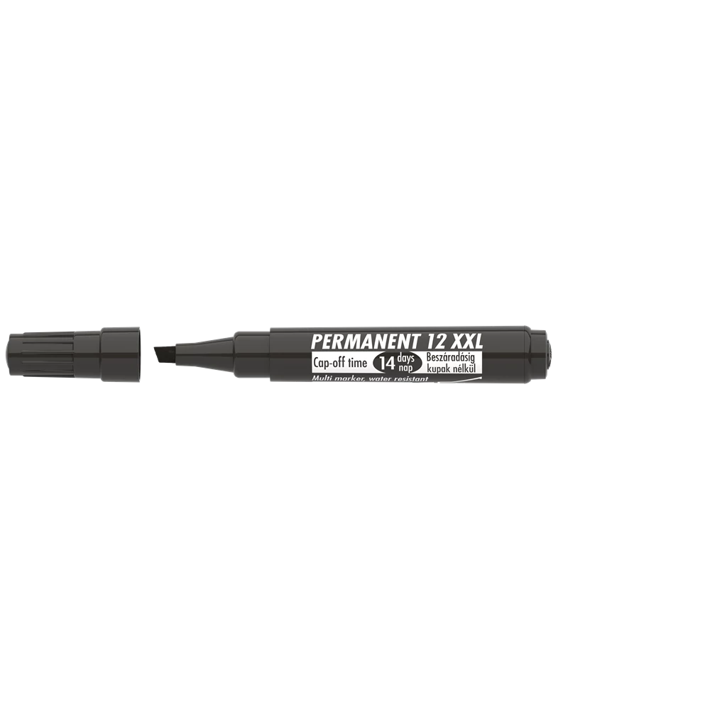 Műanyag, üveg, fém, fa, illetve szinte minden felület feliratozására, jelölésére alkalmas, alkoholbázisú festékkel töltött permanent marker. Speciális tulajdonsága, hogy 14 napig kupak nélkül sem szárad be. Gyorsan száradó festék, írásképe törlés- és vízálló. Megnövelt élettartam a nagyobb méretű testnek köszönhetően. Vágott csúccsal. Vonalvastagság: 1-4 mm. Katalóguskód: 24648