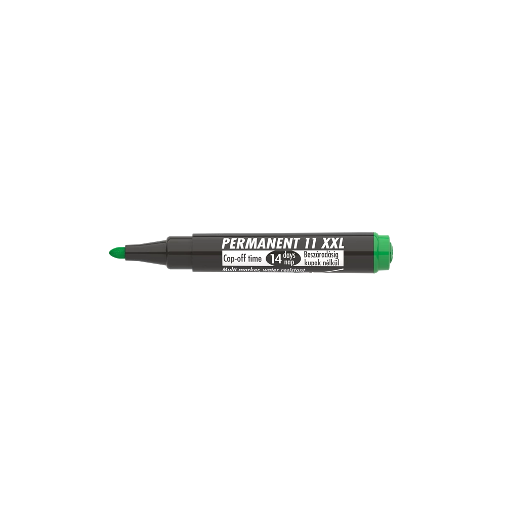 Műanyag, üveg, fém, fa, illetve szinte minden felület feliratozására, jelölésére alkalmas, alkoholbázisú festékkel töltött permanent marker. Speciális tulajdonsága, hogy 14 napig kupak nélkül sem szárad be. Gyorsan száradó festék, írásképe törlés- és vízálló. Megnövelt élettartam a nagyobb méretű testnek köszönhetően. Kerek és vágott csúccsal. Katalóguskód: 24646