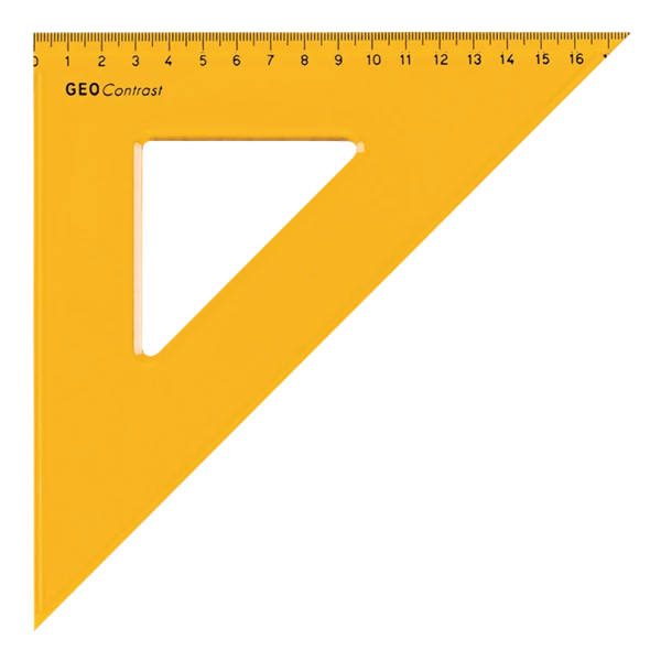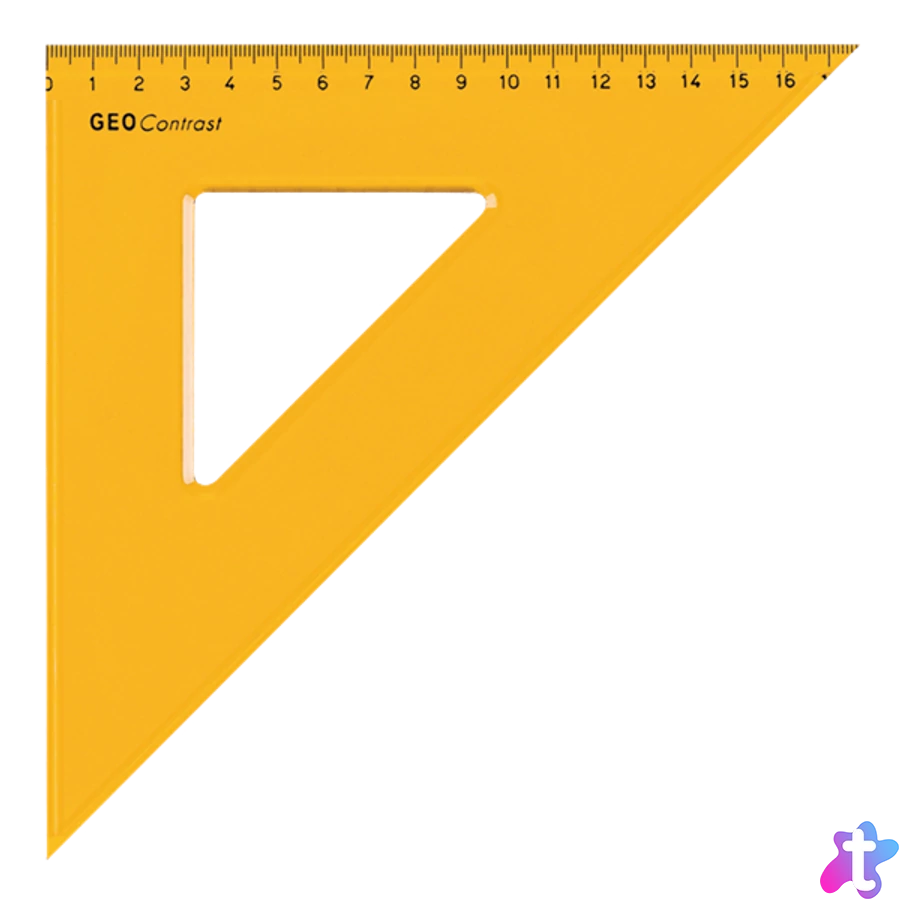Szintetikus anyagból készült, magas kontrasztú, átlátszó narancssárga színben. Tustinta használatához is tökéletesen alkalmas. A vonalzó mm skálával rendelkezik. 0 pont a 90°-os derékszög szélén.