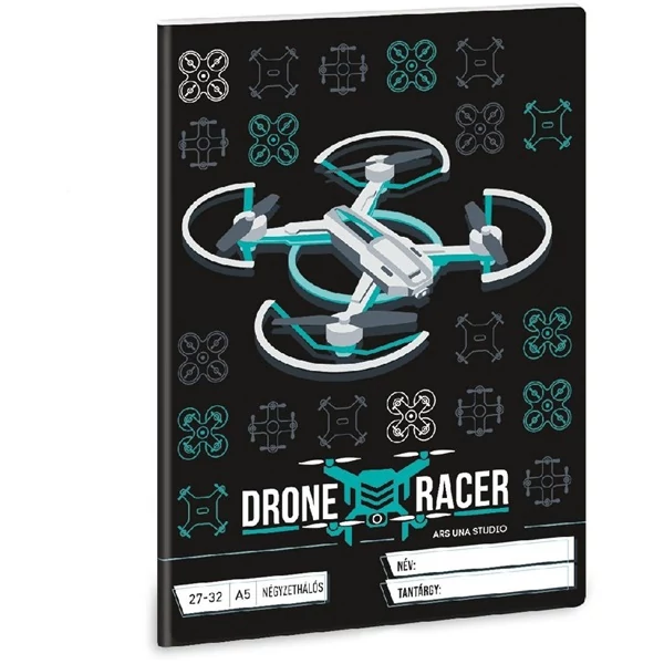 A/5-ös méretű négyzethálós füzet. 32 lapos, belseje 75 gr-os papírból. Borítója 250 gr-os műnyomó kartonra lekerekített sarkokkal, fényes fóliázással, 4 szín nyomással készült.