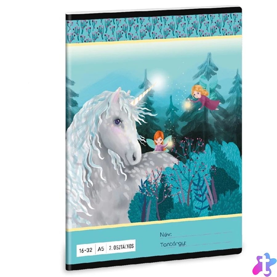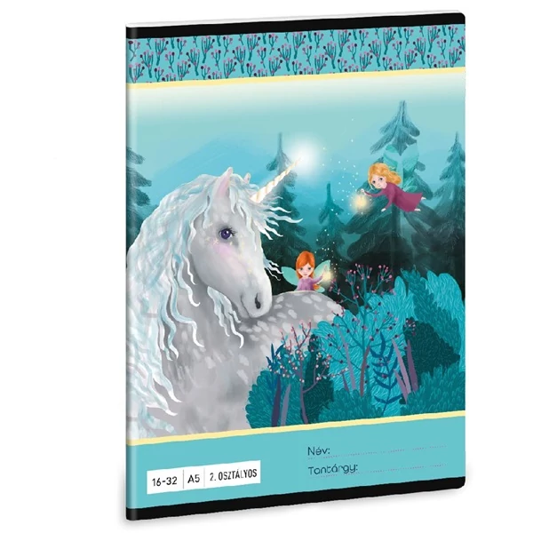 A/5-ös méretű, vonalas füzet 2. osztályos szabványos vonalazással. 32 lapos, belseje 75 gr-os papírból. Borítója 250 gr-os műnyomó kartonra lekerekített sarkokkal, fényes fóliázással, 4 szín nyomással készült.