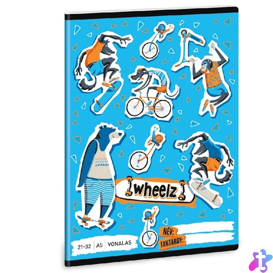 A/5-ös méretű vonalas füzet, 4. osztálytól használható szabványos vonalazású. 32 lapos, belseje 75 gr-os papírból. Borítója 250 gr-os műnyomó kartonra lekerekített sarkokkal, fényes fóliázással, 4 szín nyomással készült.