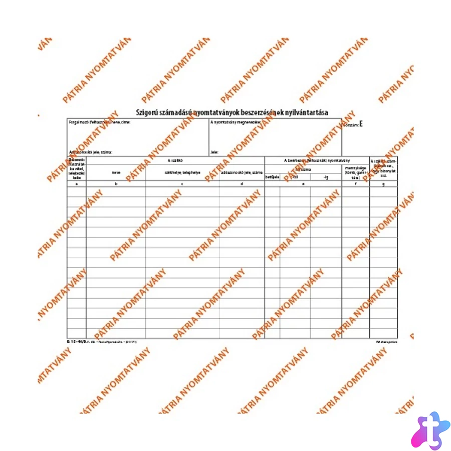 Szigorú számadású nyomtatványok beszerzésének nyilvántartása 25 lapos tömb A/4 fekvő