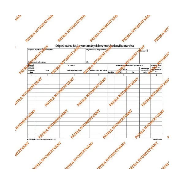 B.15-46 A4 25 lapos fekvő "Szigorú számadású nyomtatványok nyilvántartása" nyomtatvány