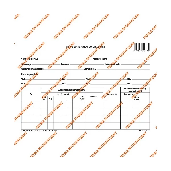 B.3161-4/UJ 290x195 "Munkavállaló egészségügyi törzslapja" nyomtatvány