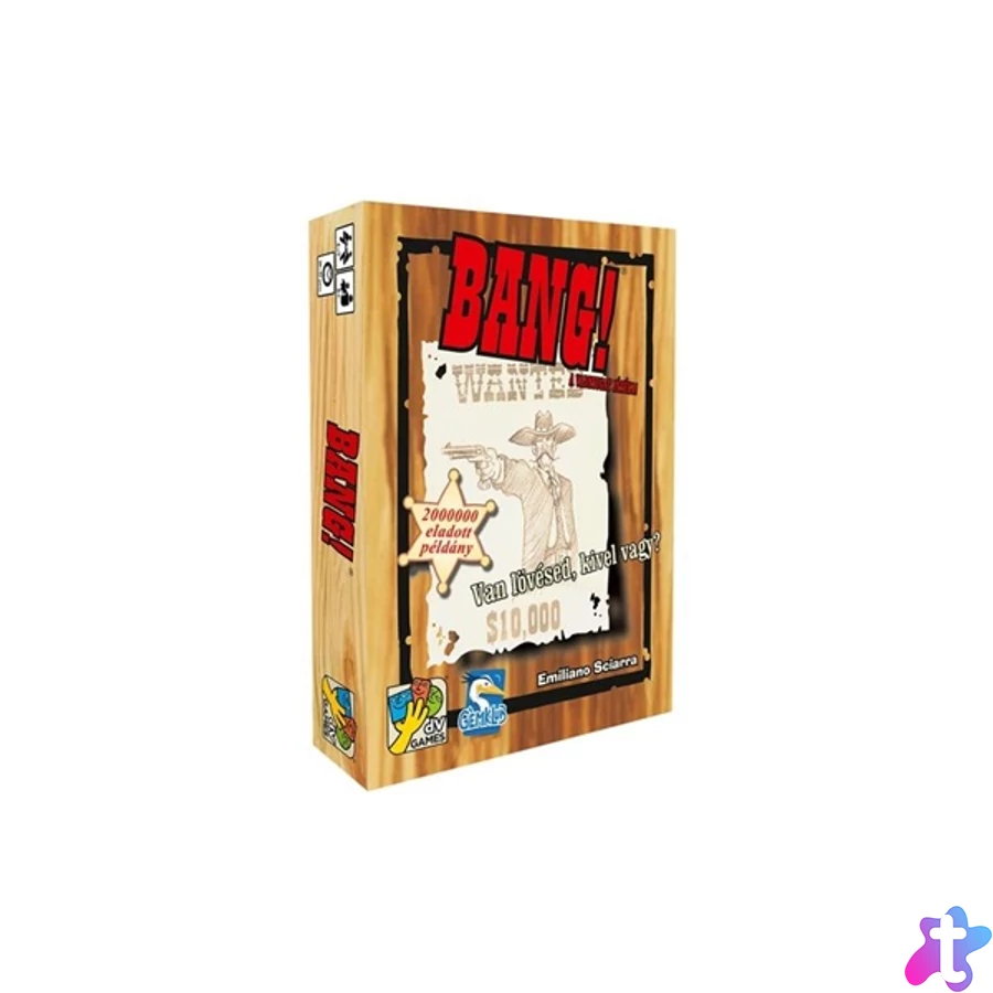 Könnyed vadnyugati kártyajáték, amiben nem tudhatod biztosan, kik az ellenségeid... A Bang! világszerte népszerű, titkos szerepes partijáték. Ebben a társasjátékban a játékosok a vadnyugat hőseinek és banditáinak bőrébe bújnak, és kártyáik kijátszásával igyekeznek leszámolni ellenségeikkel. A játékhoz több kiegészítő is kapható, amelyek még érdekesebbé teszik a játékmenetet!
