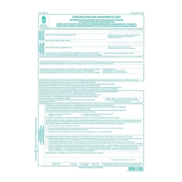 - A külföldi utas által visszaigényelhető áfához való nyomtatvány