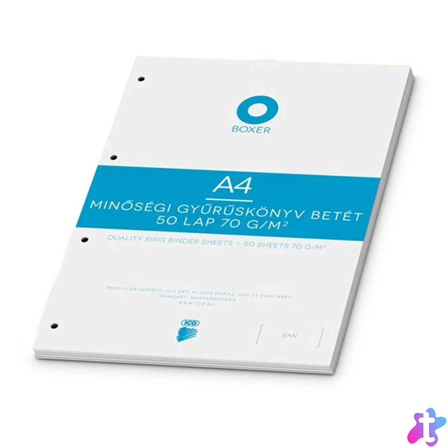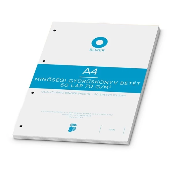 Gyűrűs könyv betét, A4, vonalas, 50 lap, BOXER, fehér