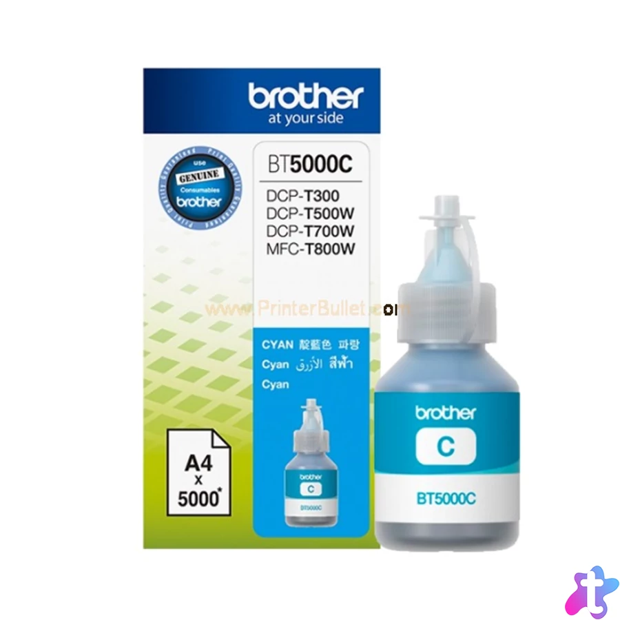 Brother BT5000C ciánkék tintatartály, akár 5000 oldalhoz. A szuper nagy töltet azt jelenti, hogy ritkábban kell a tinta betöltésével foglalkoznia, s mindeközben a költségei is csökkennek.
