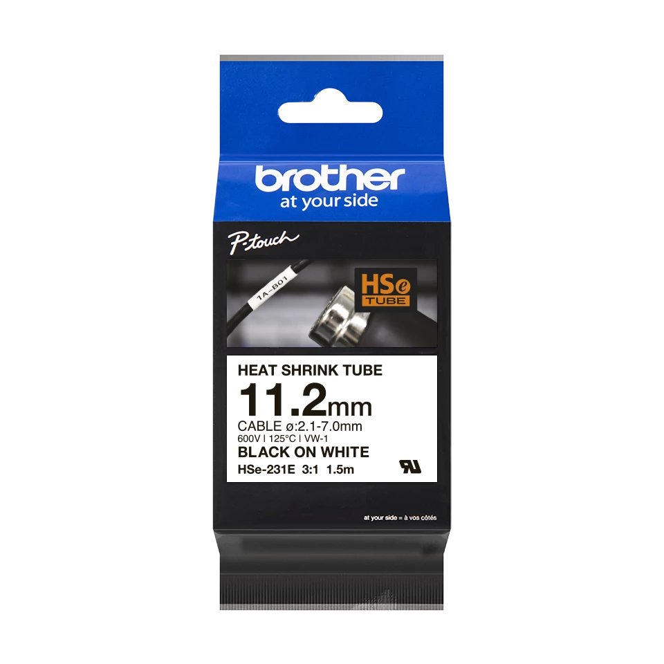 Brother HSE-221E P-Touch 9mm Black on White zsugorcsöves címkenyomtató szalag