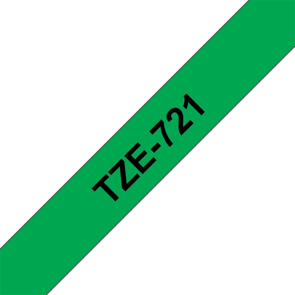 BROTHER szalag TZe-721, Zöld alapon Fekete, Laminált, 9mm 0.35", 8 méter