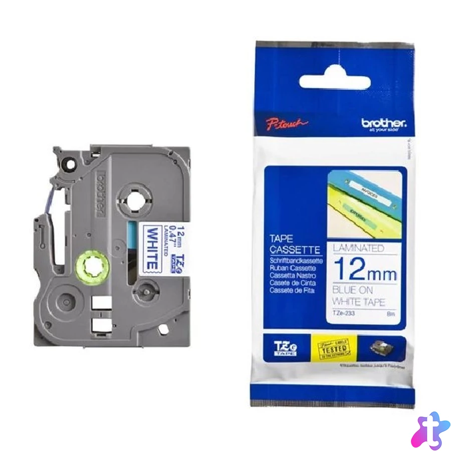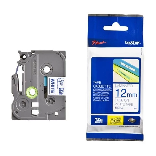Brother TZe-233 0.47" 12mmx8m fehér/kék laminált szalag