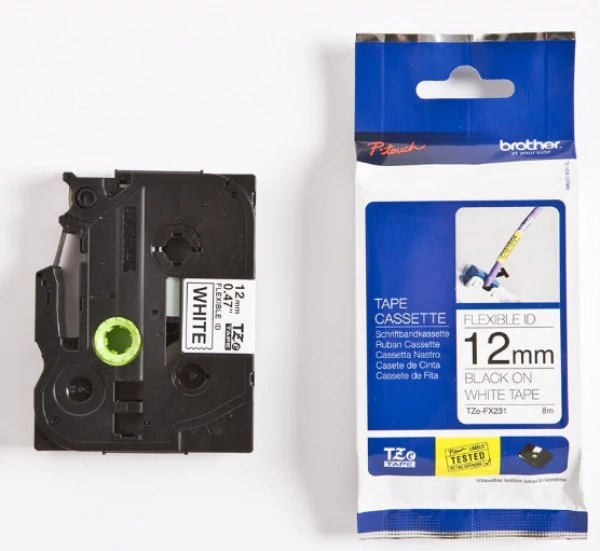 **TZe -FX231 flexibilis öntapadós laminált címkeszalag tartós feliratok nyomtatásához. Kábelek jelölésére ajánlott.**