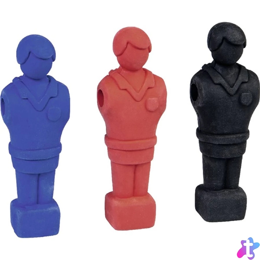 Asztali foci figura radír, 3 féle színben. Mérete: 9x4x2cm, anyaga szintetikus TPR, ceruzához ajánljuk. A színválasztás nem lehetséges!