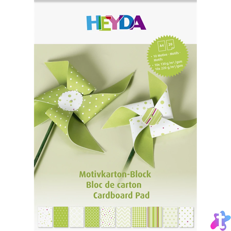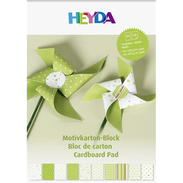 20 lapos, A4 méretű, felül ragasztott zöld árnyalatú, mintás kartonlap szett.