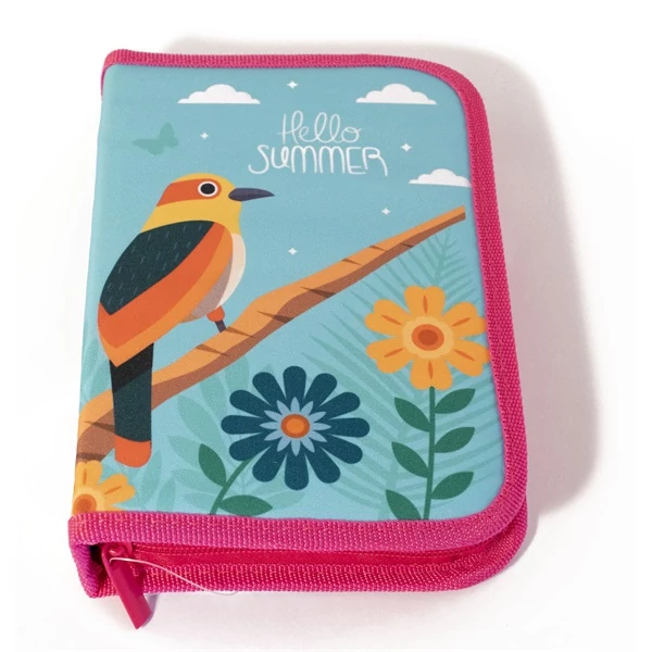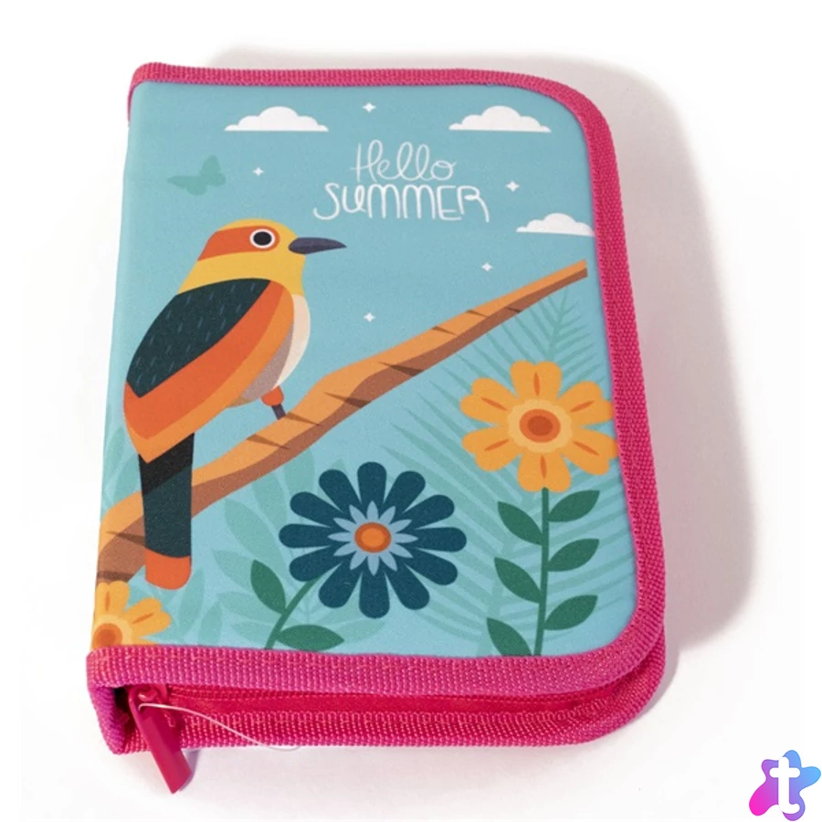 19 részes tolltartó, strapabíró igényes kialakítás, cippzáras, kihajtható rész órarenddel