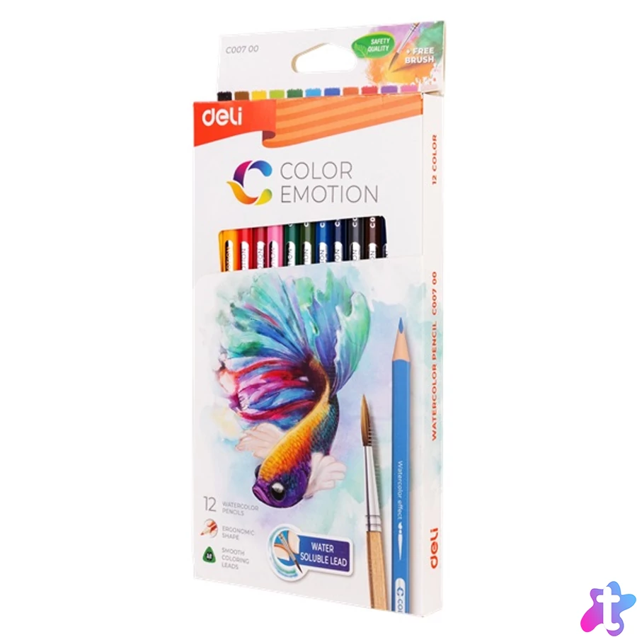 Deli Color Emotion, akvarellceruza készlet, papírdobozban, 12 különböző szín