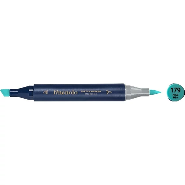 Kétvégű, alkoholbázisú art marker. Ez a marker minden igényt kielégít. Nemcsak a részletek vékony ecsettel való megrajzolására, hanem a széles hegy színezésére és kiemelésre is. Az ecsethegy 1–4 mm, a vágott hegy 1-7 mm széles és kopásálló. Az erősen pigmentált tinta gyorsan szárad, és egyenletes színt ad a papíron. Könnyen rétegezhetők és keverhetők a különböző színek anélkül, hogy aggódnának a fakulás miatt. Ezek az élénk színű markerek kiváló elkenődés- és vízálló tulajdonságokkal rendelkeznek, amelyek a legtöbb felületen működnek mint például szöveten, vásznon, üvegen, fán, fémen és papíron. Az ergonomikus, négyszög alakú test könnyű és kényelmes fogást biztosít. Minden marker a kupak színének megfelelő színkóddal van ellátva. Alkalmas gyerekeknek, kezdőknek és profiknak, művészet szerelmeseinek, illusztrátoroknak, tervezőknek. 179 - Aqua Mint