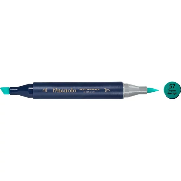 Kétvégű, alkoholbázisú art marker. Ez a marker minden igényt kielégít. Nemcsak a részletek vékony ecsettel való megrajzolására, hanem a széles hegy színezésére és kiemelésre is. Az ecsethegy 1–4 mm, a vágott hegy 1-7 mm széles és kopásálló. Az erősen pigmentált tinta gyorsan szárad, és egyenletes színt ad a papíron. Könnyen rétegezhetők és keverhetők a különböző színek anélkül, hogy aggódnának a fakulás miatt. Ezek az élénk színű markerek kiváló elkenődés- és vízálló tulajdonságokkal rendelkeznek, amelyek a legtöbb felületen működnek mint például szöveten, vásznon, üvegen, fán, fémen és papíron. Az ergonomikus, négyszög alakú test könnyű és kényelmes fogást biztosít. Minden marker a kupak színének megfelelő színkóddal van ellátva. Alkalmas gyerekeknek, kezdőknek és profiknak, művészet szerelmeseinek, illusztrátoroknak, tervezőknek. 57 - Turquoise Green Light