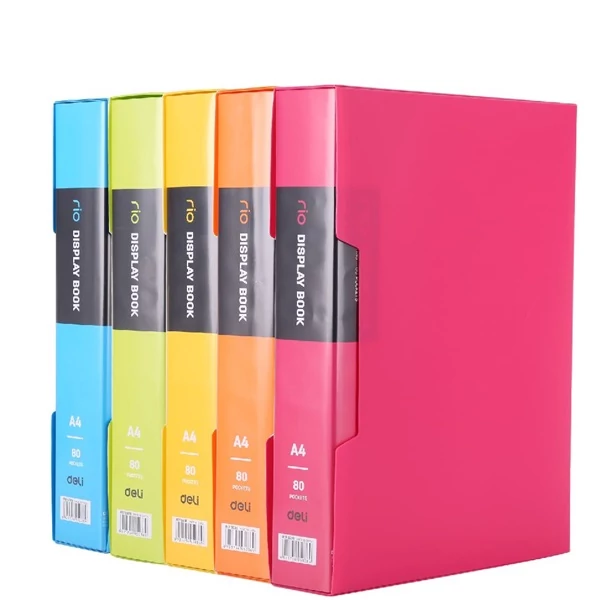 Bemutatómappa, 80 zsebes, PP, A4, feliratozható, kemény borító, DELI "rio", vegyes színek, a szín nem választható