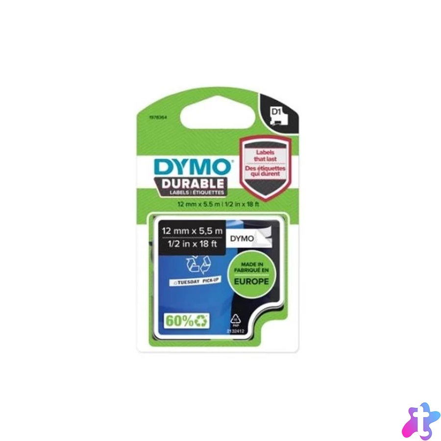 DYMO címke LM D1 alap, 12mm, fehér betű / fekete alap