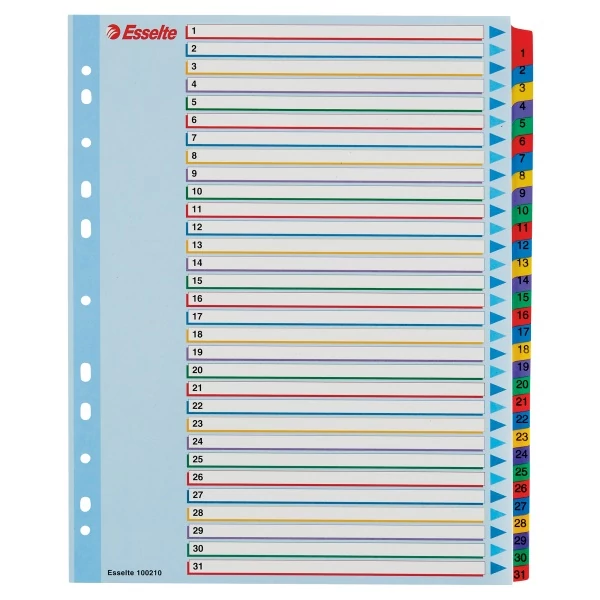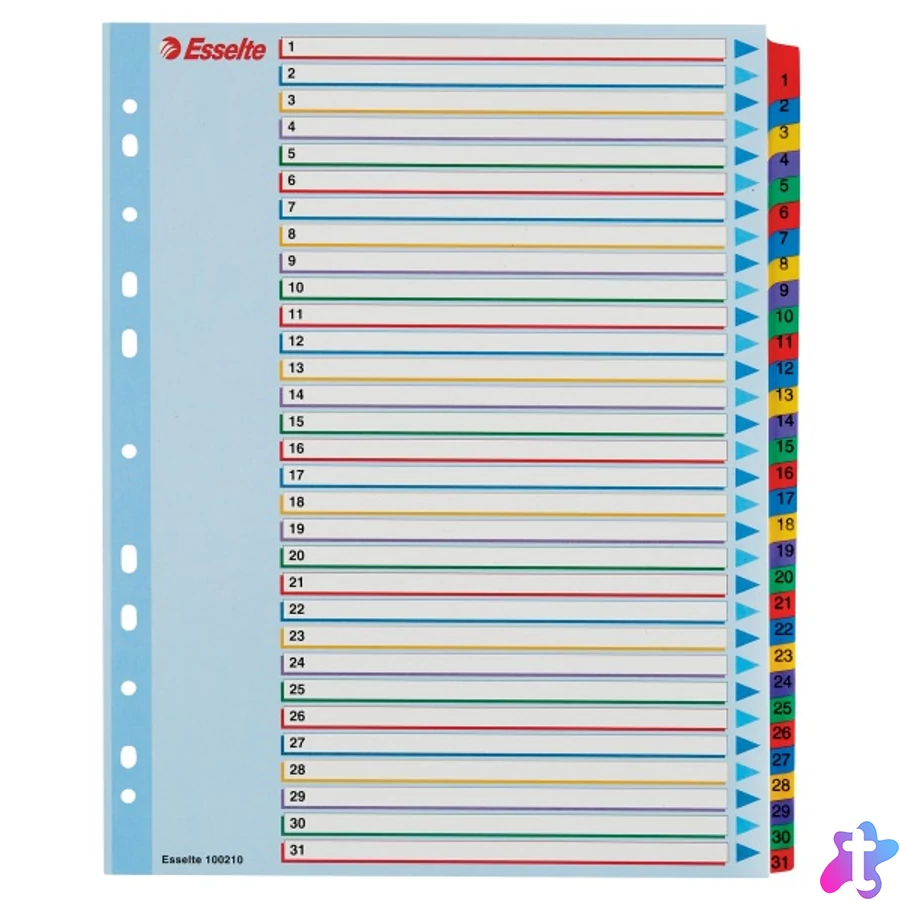 Elválasztólap, A4, regiszteres 1-31 laminált karton fülek 100164 Esselte