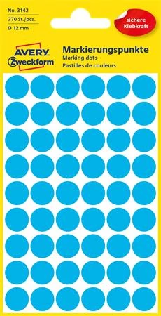Etikett, 12 mm, kör, AVERY ZWECKFORM, 5 különböző szín, 270 etikett/csomag