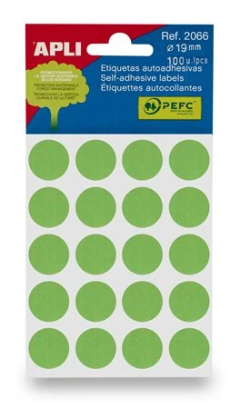 Etikett, 13 mm kör, kézzel írható, színes, APLI, zöld 175 etikett/csomag