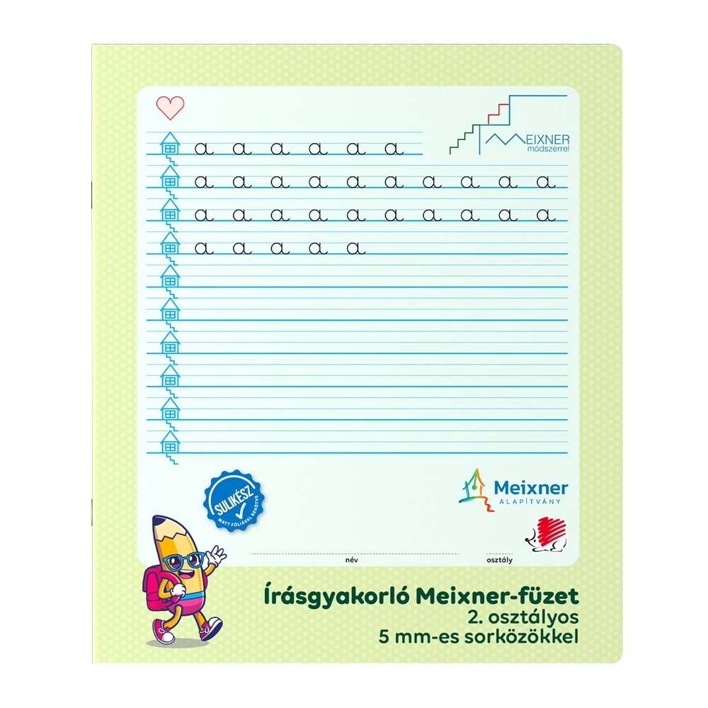 Írás gyakorló füzet a 2. osztályosok számára, amely a Meixner Alapítvány együttműködésével és ajánlásával jött létre. Speciális vonalazású és kialakítású füzet alkalmas a Meixner-féle írás tanulás elsajátítására és gyakorlására.