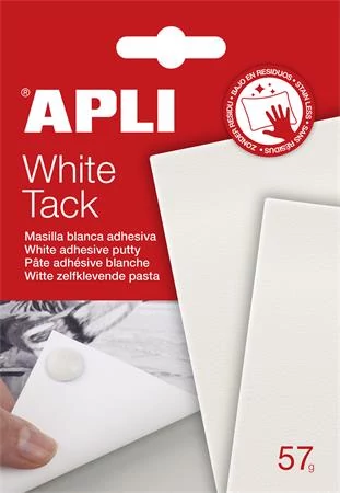 Fehér színű, öntapadós gyurmaragasztó otthoni, irodai és iskolai felhasználásra.