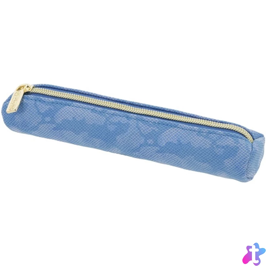 Henger alakú kék tolltartó, tároló rekesszel.
