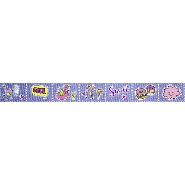 • Dekorációs ragasztószalag hét fajta motívummal, bélyeg perforációval, amelyek egyenként eltávolíthatók.