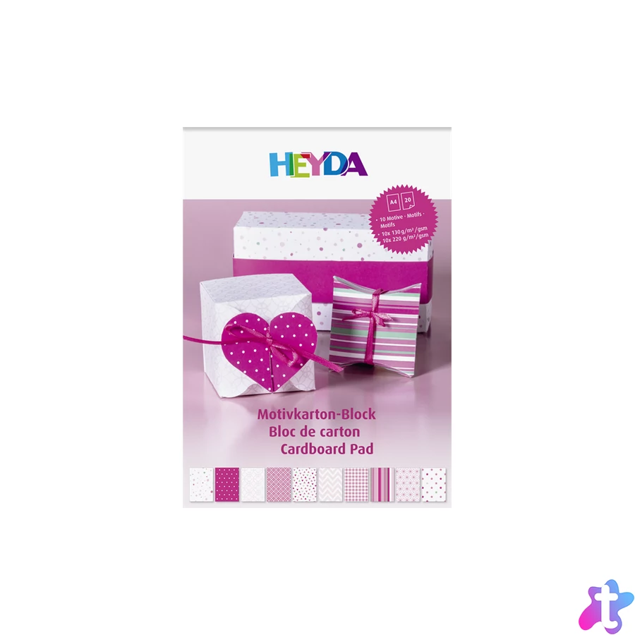 20 lapos, A4 méretű, felül ragasztott rózsaszín árnyalatú, mintás kartonlap szett.