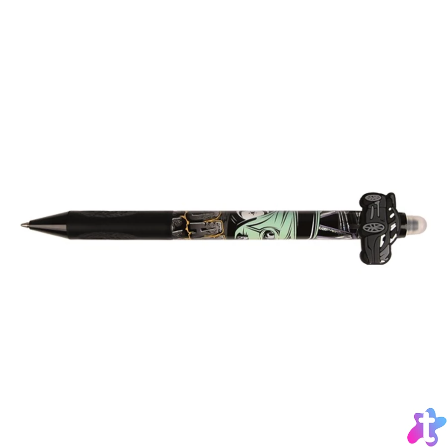 Törölhető tintás, cserélhető betétes golyóstoll. Golyó átmérője 0,5 mm. A klipsszel könnyedén be,-és kikapcsolható. A klipszen különböző figurák találhatóak. A leírt szöveg a speciális hőérzékeny tintának köszönhetően a toll végén található radírral való dörzsölés hatására eltűnik, majd újraírható és újra törölhető. A minta nem választható.