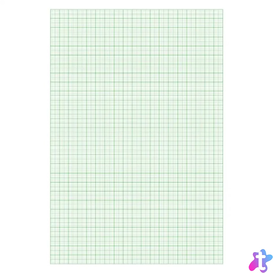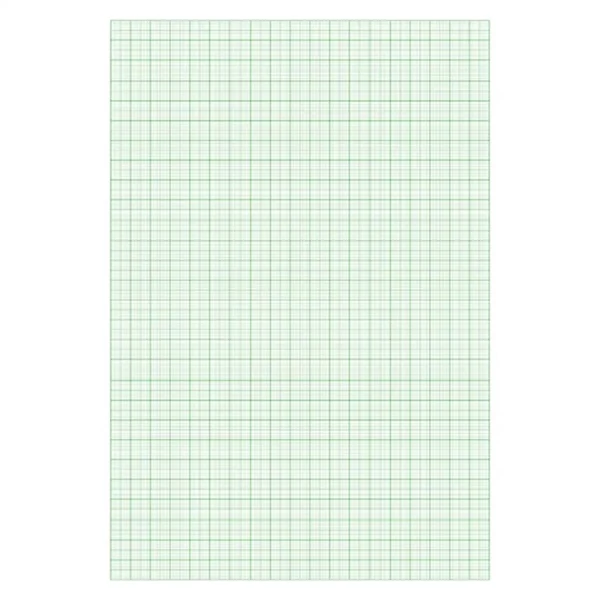 - Négyzetrácsos lap négyzetmilliméteres oldalú apró négyzetek sokásága zöld színben , amely mértani rajzok, grafikonok készítésére használható.