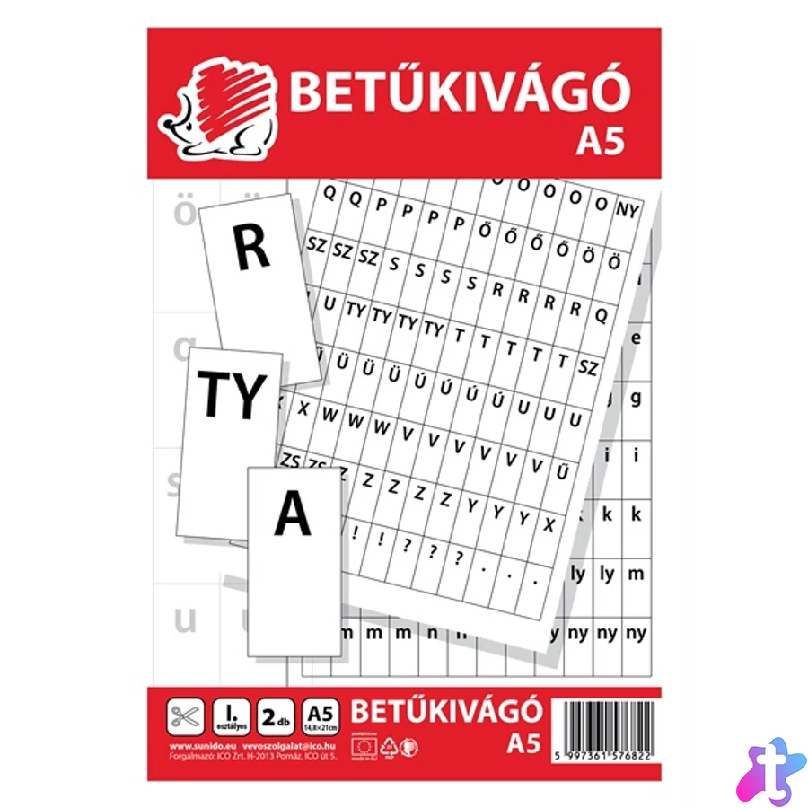 - A csomagban 2 db A5-ös betűkivágó lap található, az egyik oldalon nagy betűk, a másik oldalon a kisbetűk találhatók.