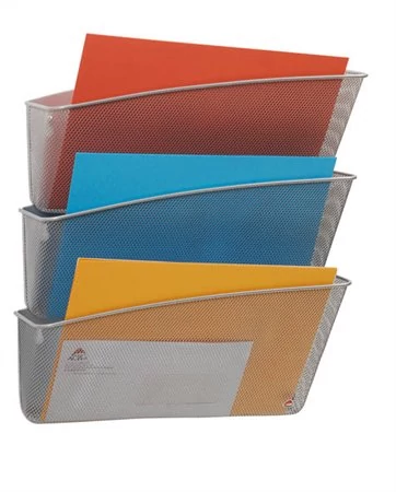 Irattartó, fali, fémhálós, 3 zsebes, ALBA, fekete