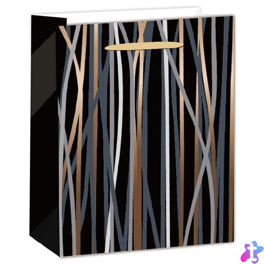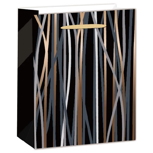 IRIS matt papírtasak, fekete/bronz csíkos 18 x 23cm