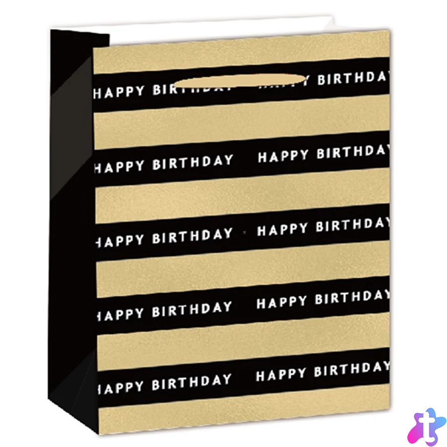 IRIS matt papírtasak, hologrammos, hot stamp, Happy Birtday fekete/arany 18 x 23cm