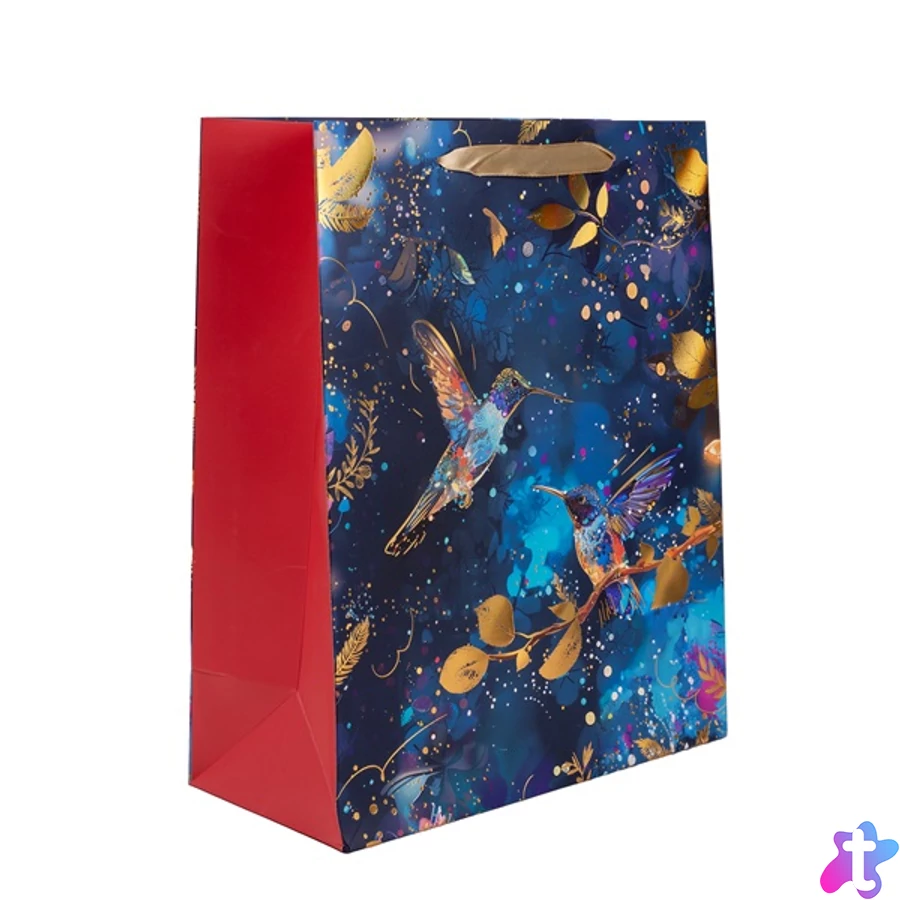 IRIS matt papírtasak, hologrammos, hot stamp, kék kolibri 18 x 23cm