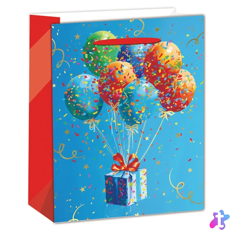 IRIS matt papírtasak, hot stamp, ajándékok+lufik kék 26 x 32cm