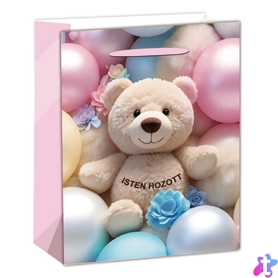 IRIS matt papírtasak, maci lufikkal 31 x 42cm