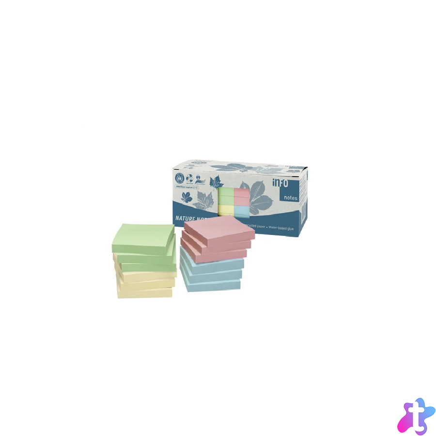 Jegyzettömb öntapadó, 75x75mm, 400lap, Info Notes pasztell mix