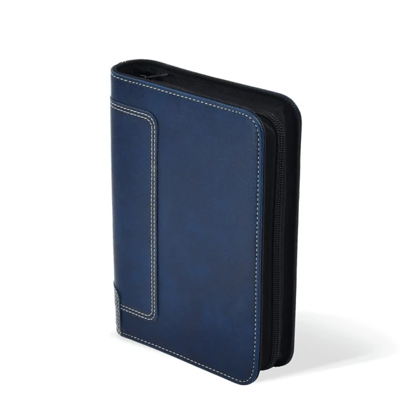Sportos megjelenésű, prégelt felületű műbőrből, praktikus, cipzáras záródással készült kalendárium, chamois lapokkal. A gyűrűs kalendárium tartalma: éves kalendárium (éves tervező leporelló, heti tervező), négyzethálós jegyzetlapok, telefonregiszter, névjegytartó, elválasztólap, vonalzó, műanyag protektor (elválasztó). Egyediesítés: présfólia- és vaknyomás, névnyomás, monogram. Tokméret: 180x240 mm, lapméret: 146x210 mm