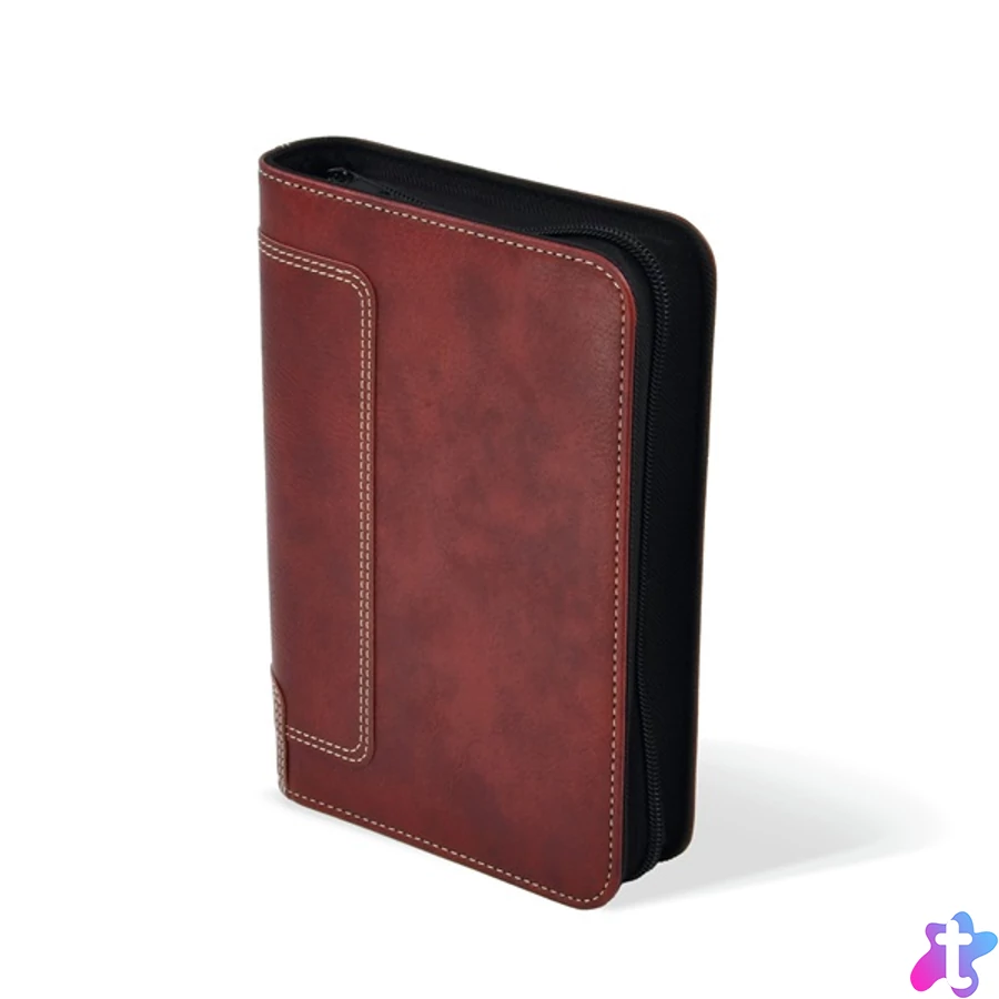 Sportos megjelenésű, prégelt felületű műbőrből, praktikus, cipzáras záródással készült kalendárium, chamois lapokkal. A gyűrűs kalendárium tartalma: éves kalendárium (éves tervező leporelló, heti tervező), négyzethálós jegyzetlapok, telefonregiszter, névjegytartó, elválasztólap, vonalzó, műanyag protektor (elválasztó). Egyediesítés: présfólia- és vaknyomás, névnyomás, monogram. Tokméret: 130x190 mm, lapméret: 95x168 mm