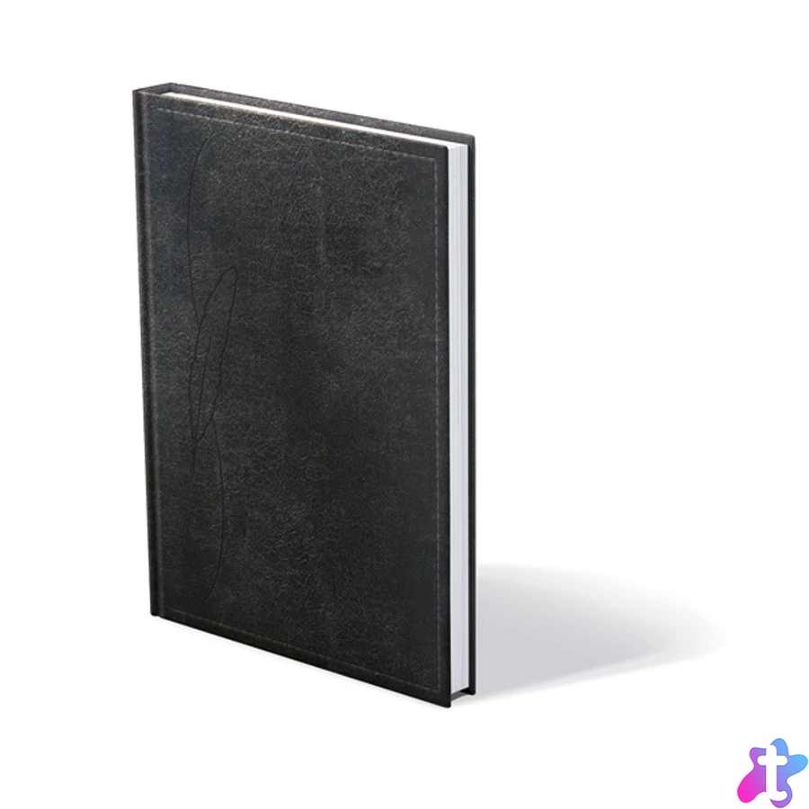 Fényes műbőr bevonóval készült tárgyalási napló. B5 méretű, fehér tömbös, 144 lapos, jelzőszalaggal és sarokperforációval, telefonregiszterrel és térképpel. Egyediesítés: szitázás, présfólia- és vaknyomás. Méret: 17x245mm