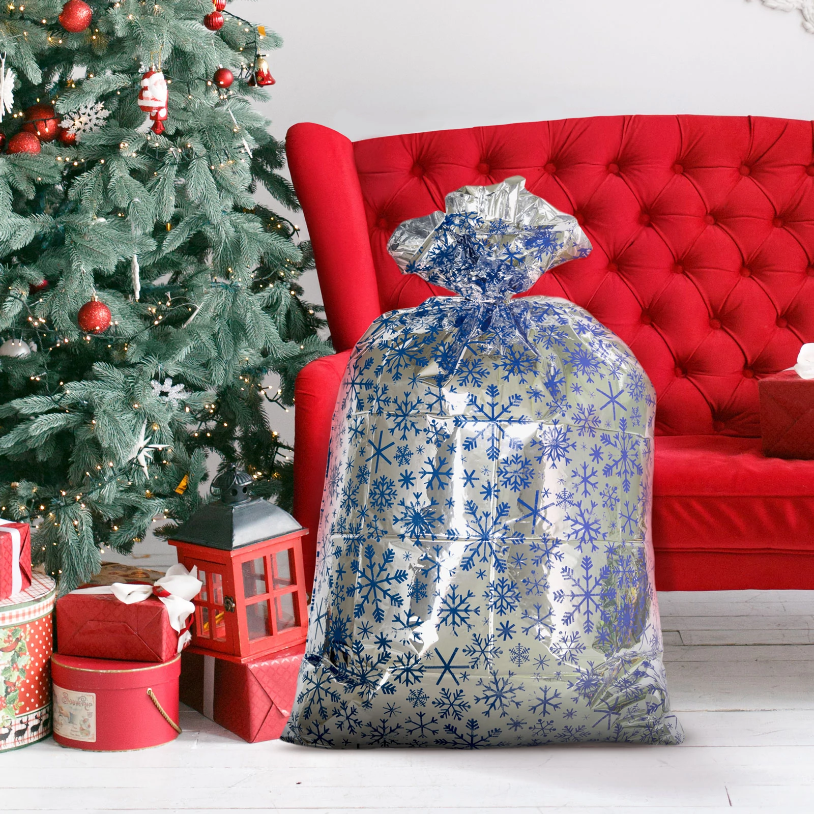 Tegye különlegessé az ajándékozást ezzel a nagyméretű karácsonyi ajándék tasakkal, amely tökéletes megoldás nagyobb méretű ajándékok csomagolására! A strapabíró fóliából készült tasak megkönnyíti az óriási méretű ajándékok csomagolását, miközben elegáns, ünnepi megjelenést kölcsönöz az ajándéknak. A Mikulás, rénszarvas, hóember mintás, csillogó dizájn még varázslatosabbá teszi a karácsonyi hangulatot.