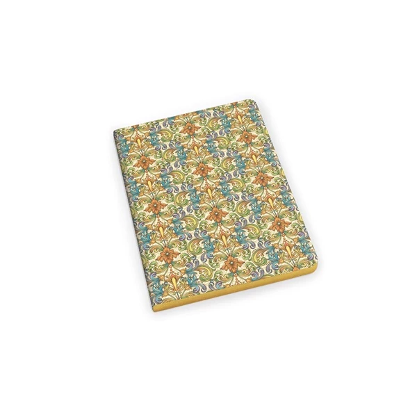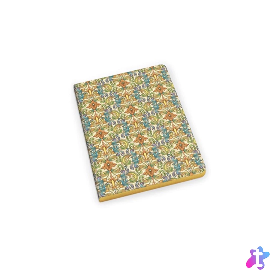 - Barokk mintás, puha fedlapos, arany élfestett 95 g/m2 tömegű füzet.