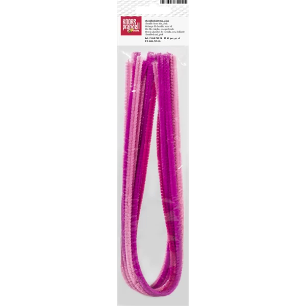 - 10 darab, 50 cm hosszú, 6 mm átmérőjű zsenília drót pink színekben.