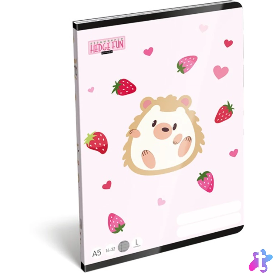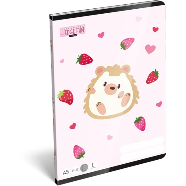 A/5-ös méretű, 32 lapos vonalas füzet 1. osztályos szabványos vonalazással, lekerekített sarkokkal